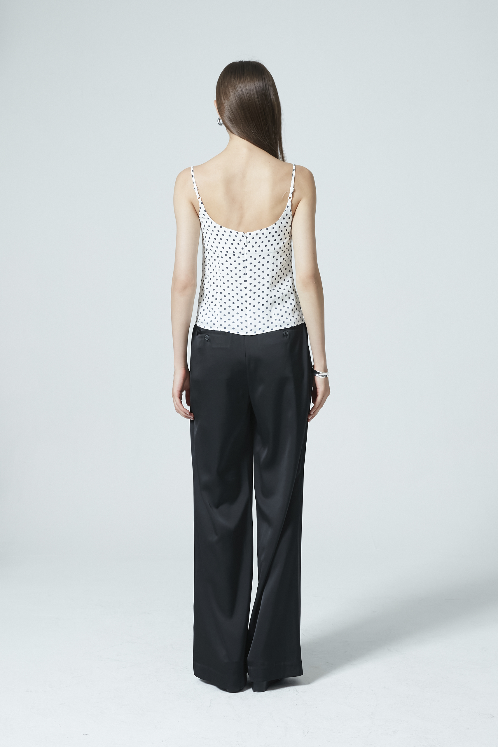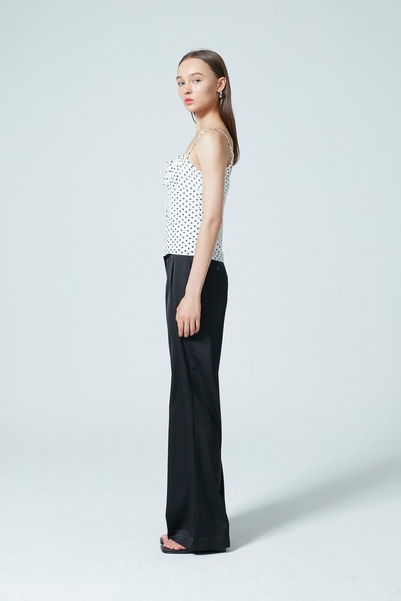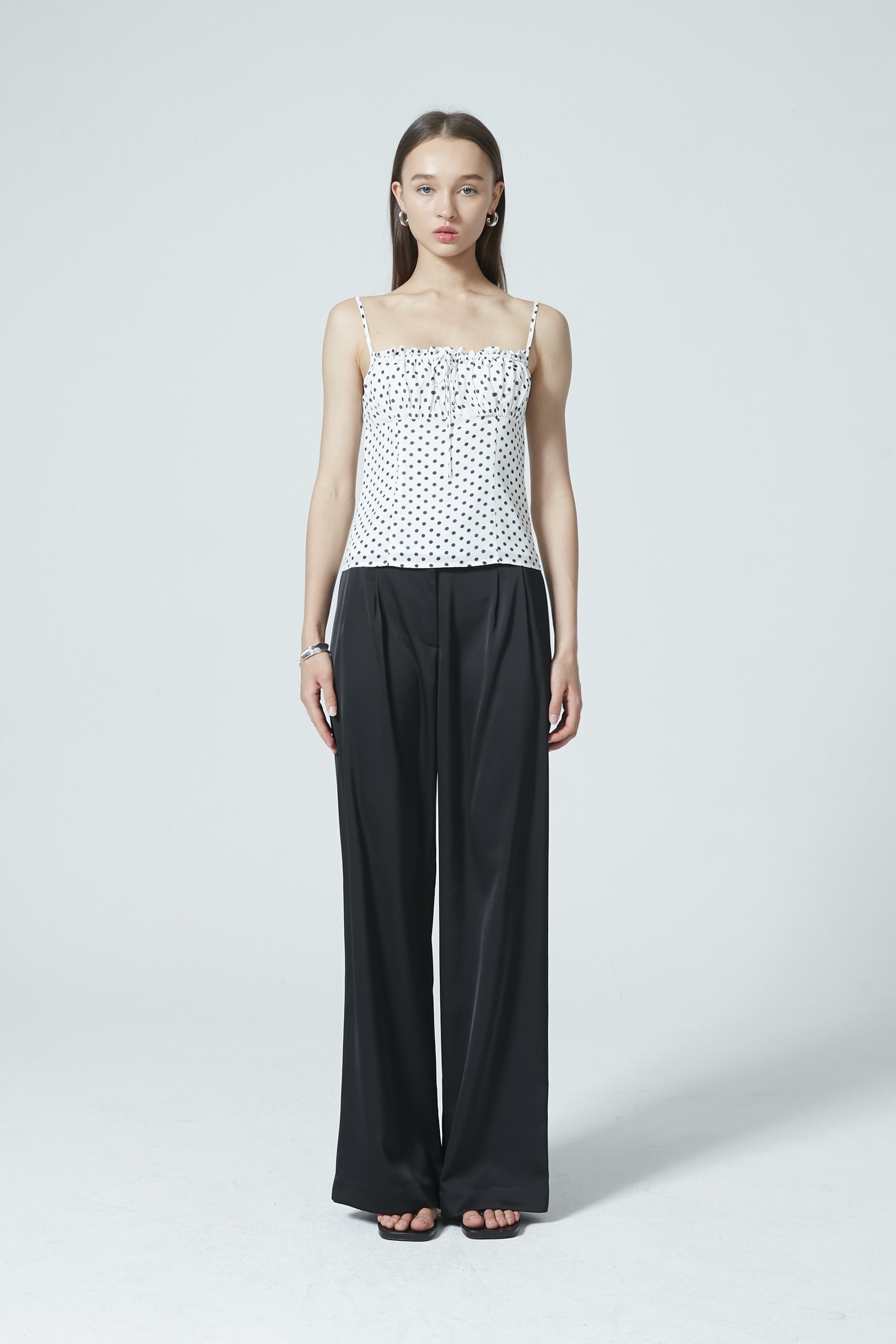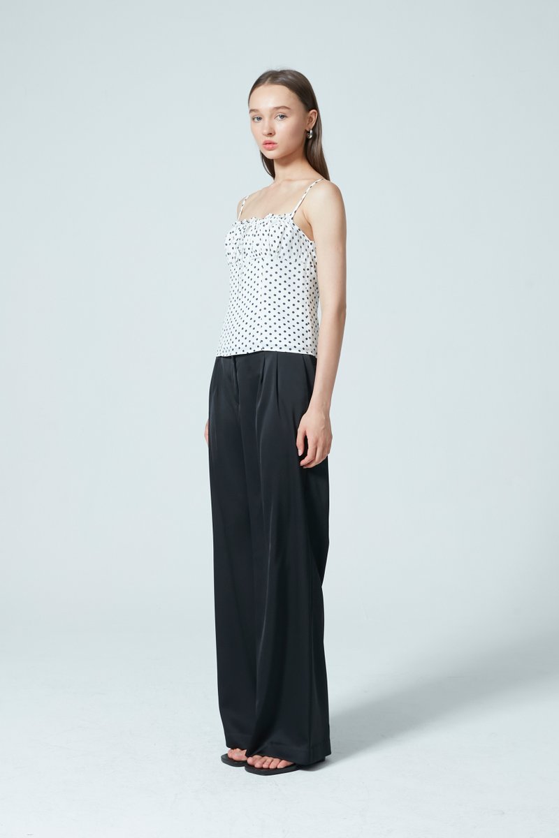 This dainty top feature a cute polka dot that is reminiscent of 40s’ pin-up styles. The ruched bust and cinched waist provide a flattering shape to the top while its adjustable straps and back zip make for a practical, comfortable top.