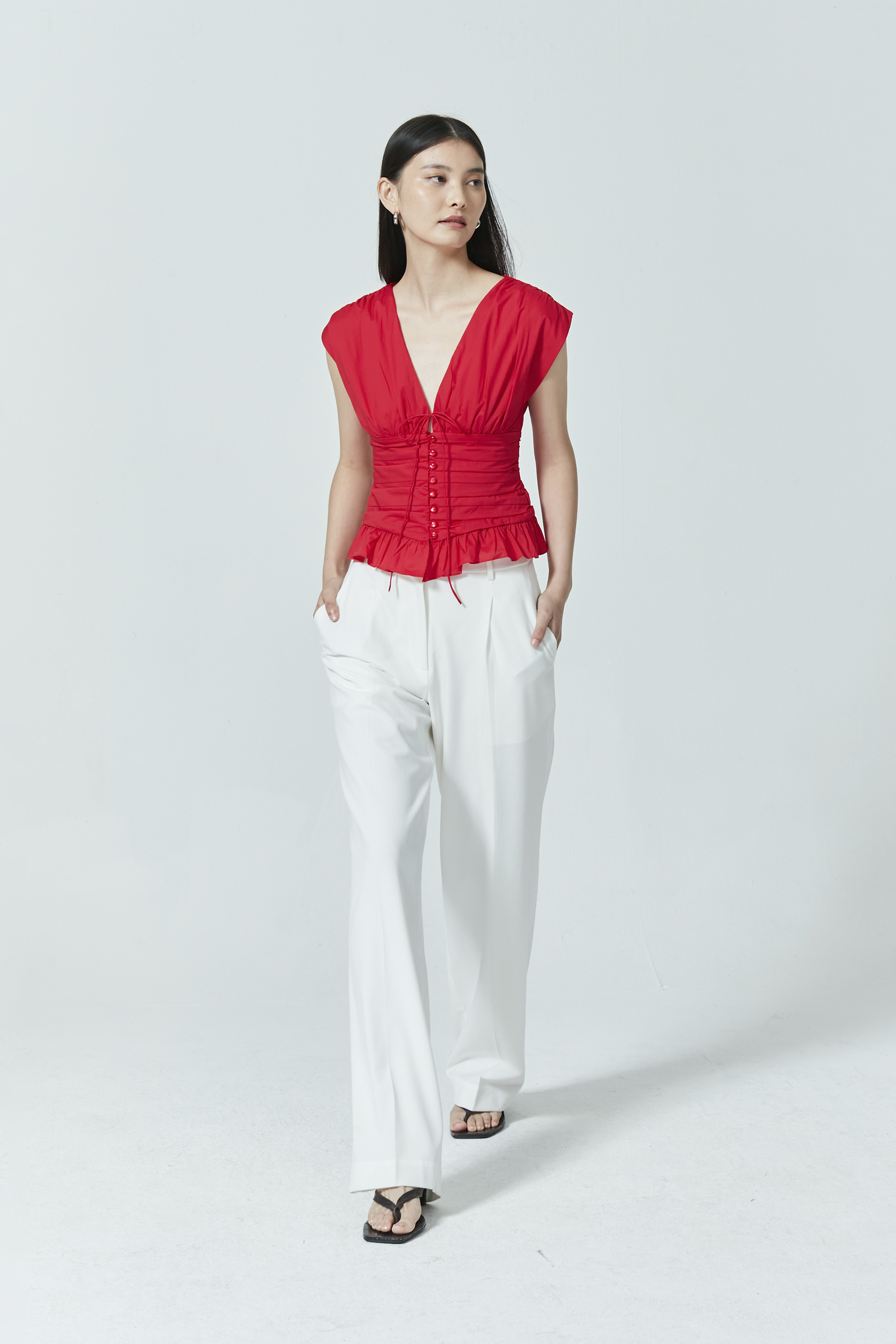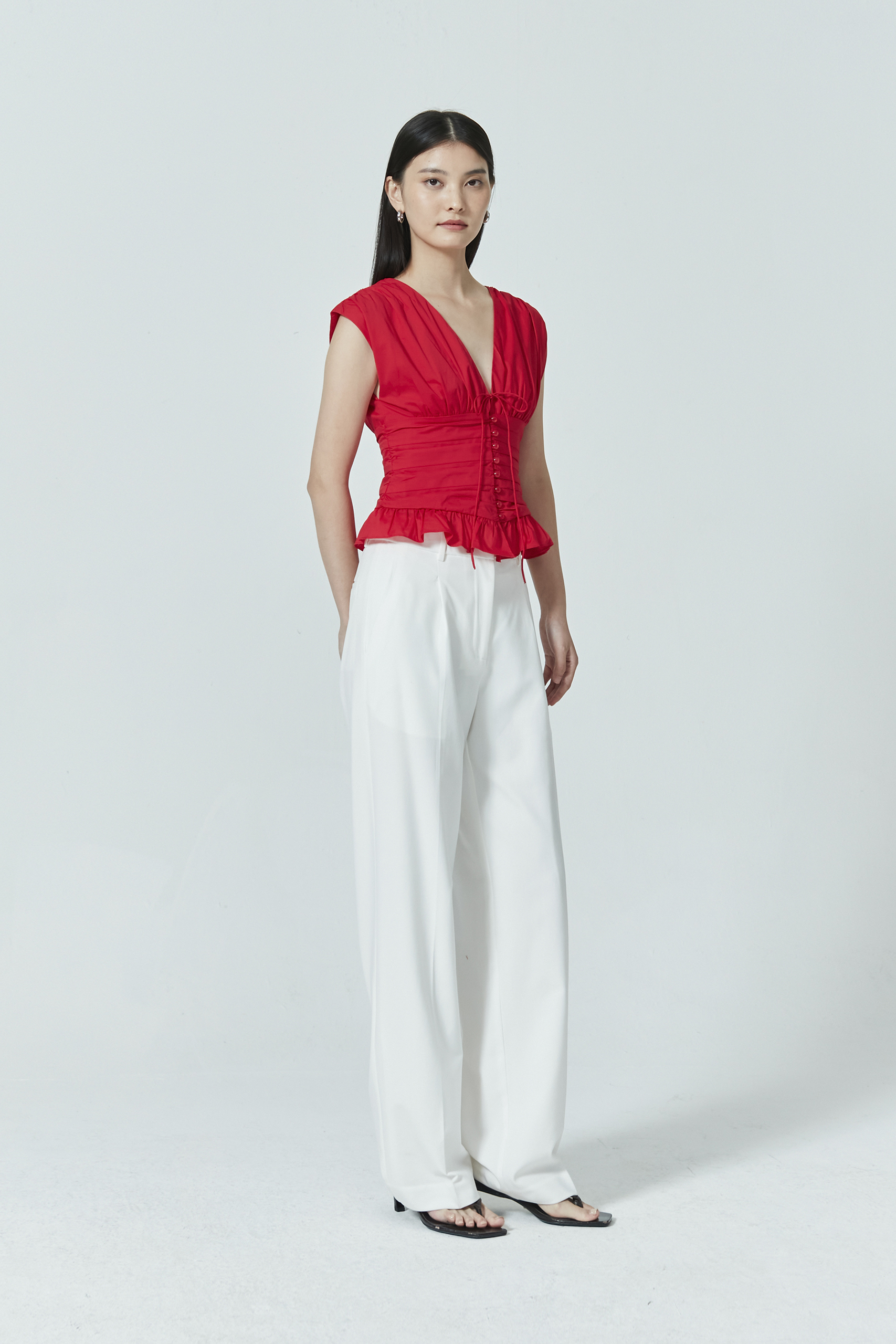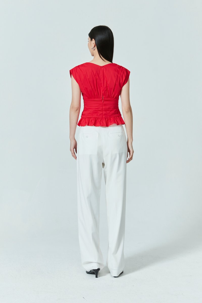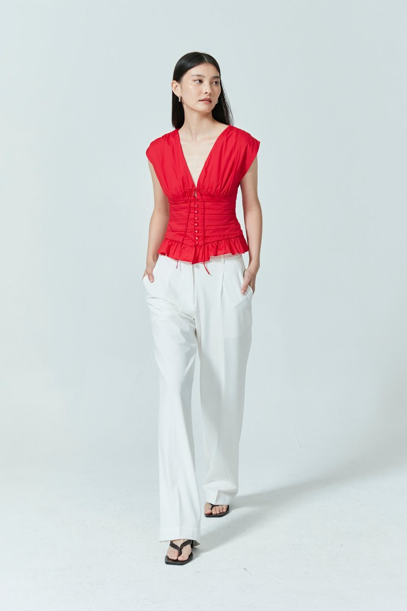 RUCHED V-NECK TOP