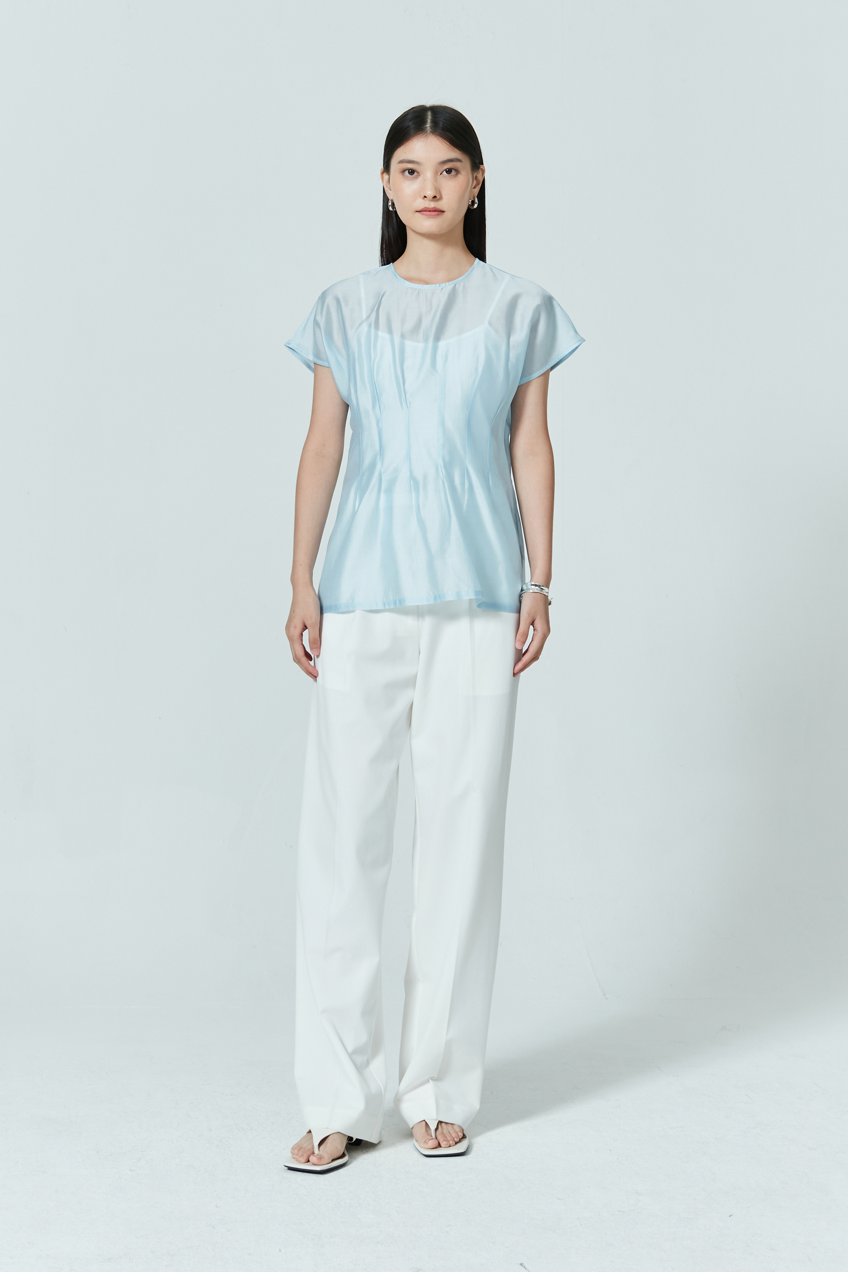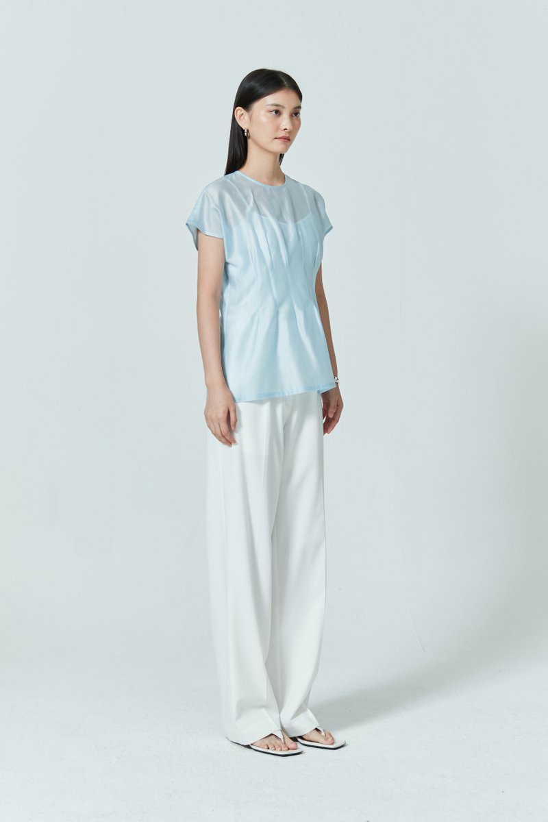 Delicate yet elegant, this sheer pintucks top floats over a smooth inner tank for comfortable coverage. The pintuck detailing brings subtle dimension, making it an easy piece for dressing up or down.