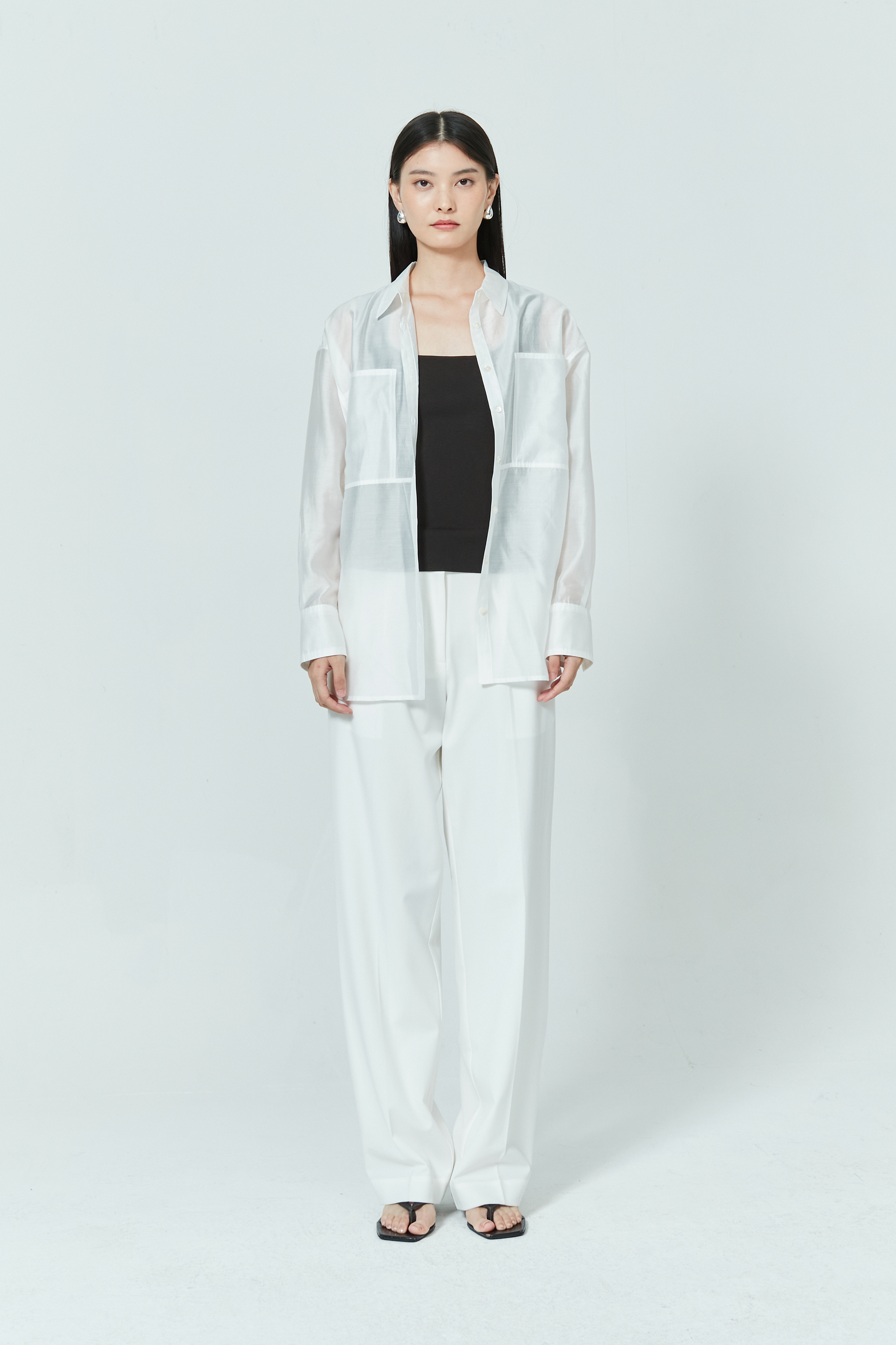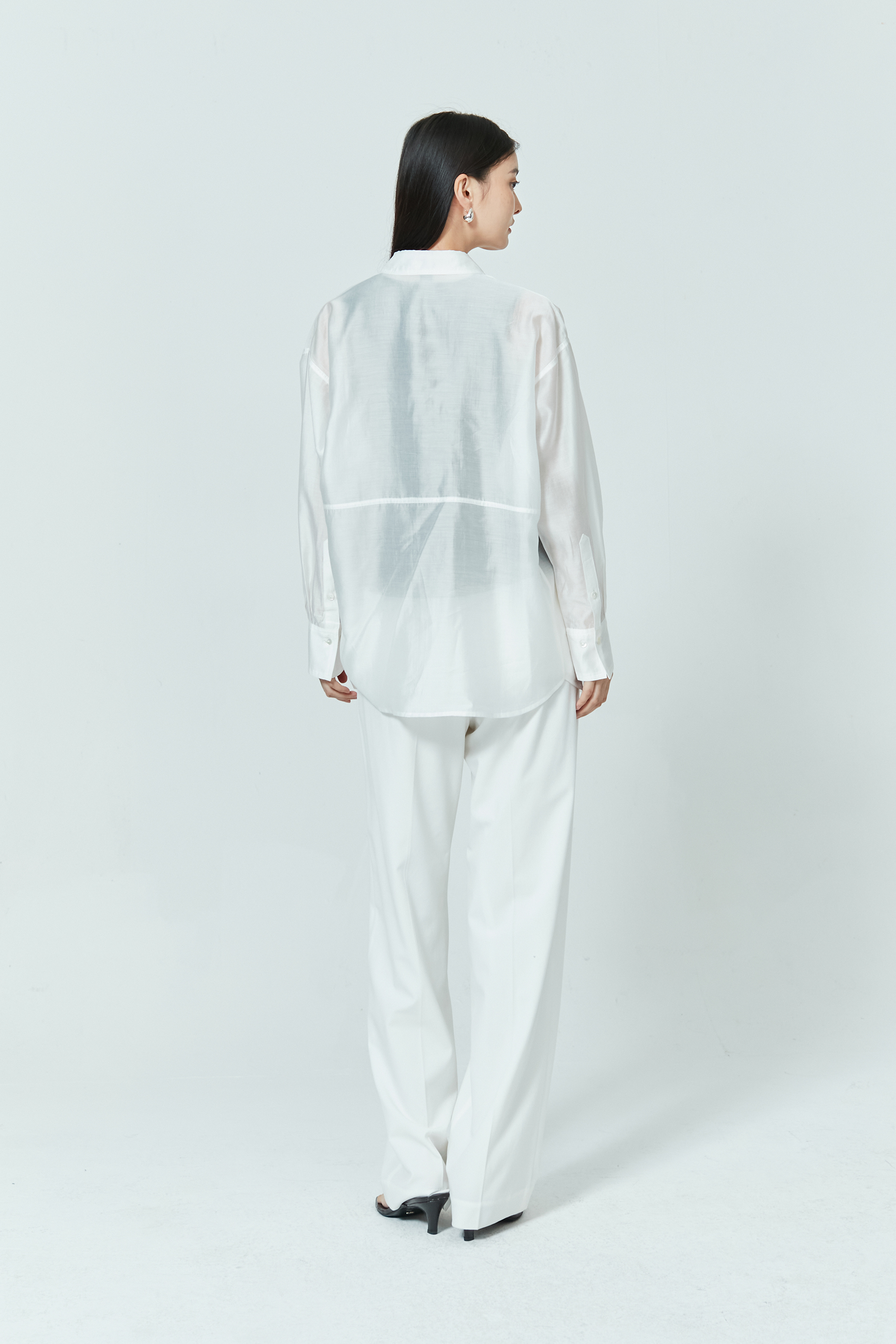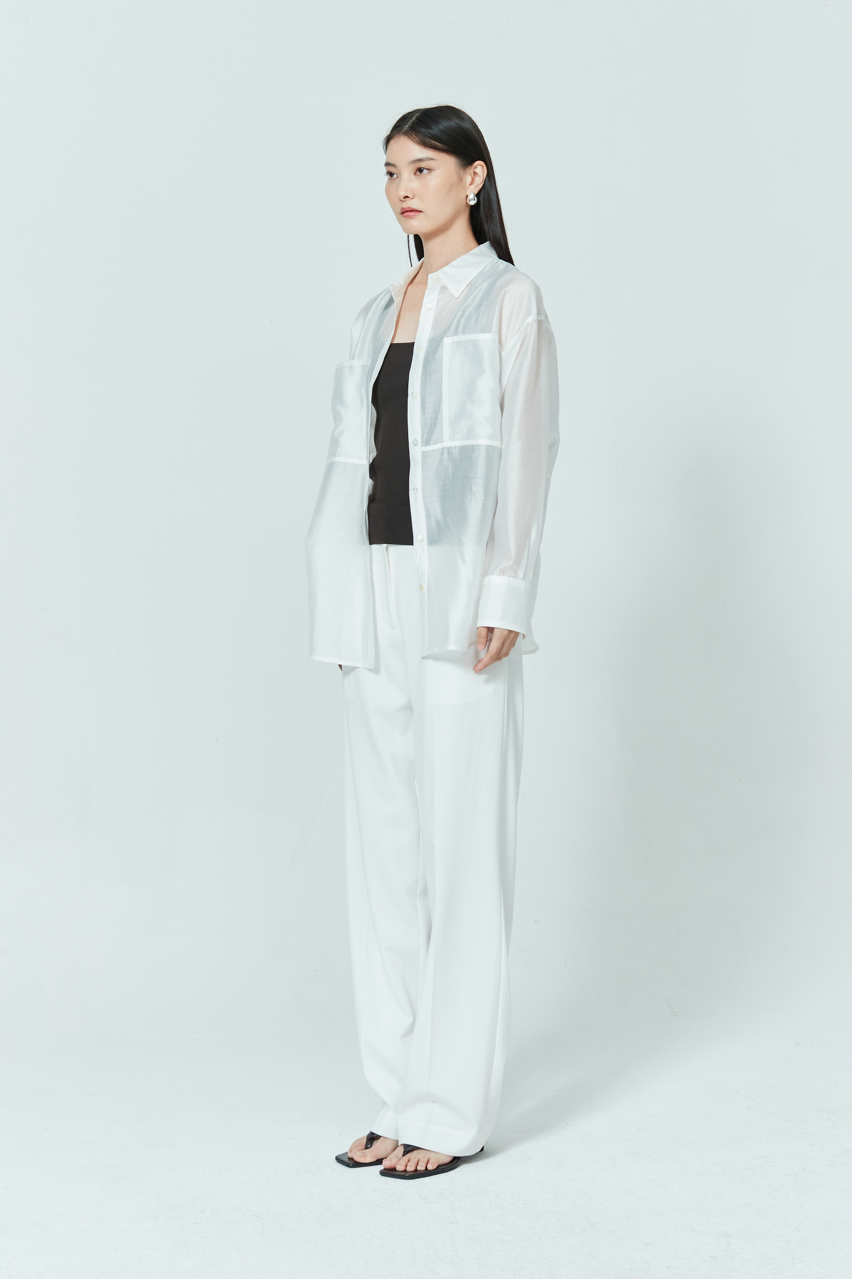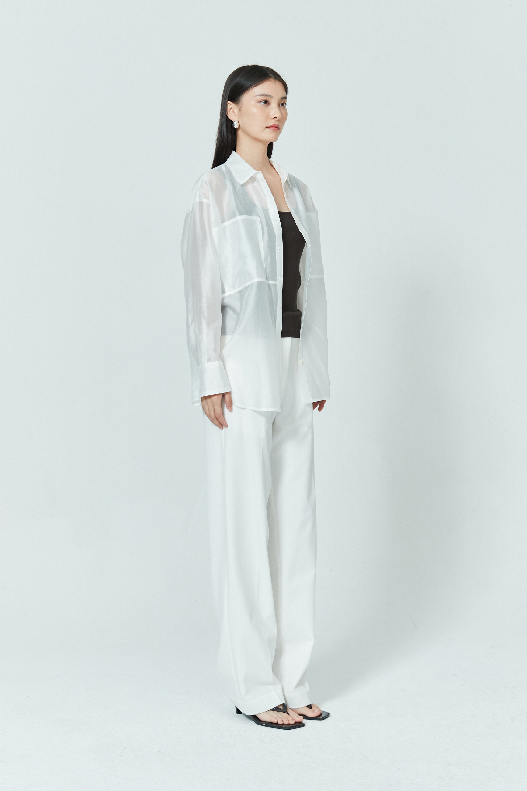 Light, effortless, and breathable—this sheer relaxed shirt is the perfect balance of warmth and coverage. Simply layer over a structured dress for contrast or pair with its matching skirt for a chic co-ord moment.