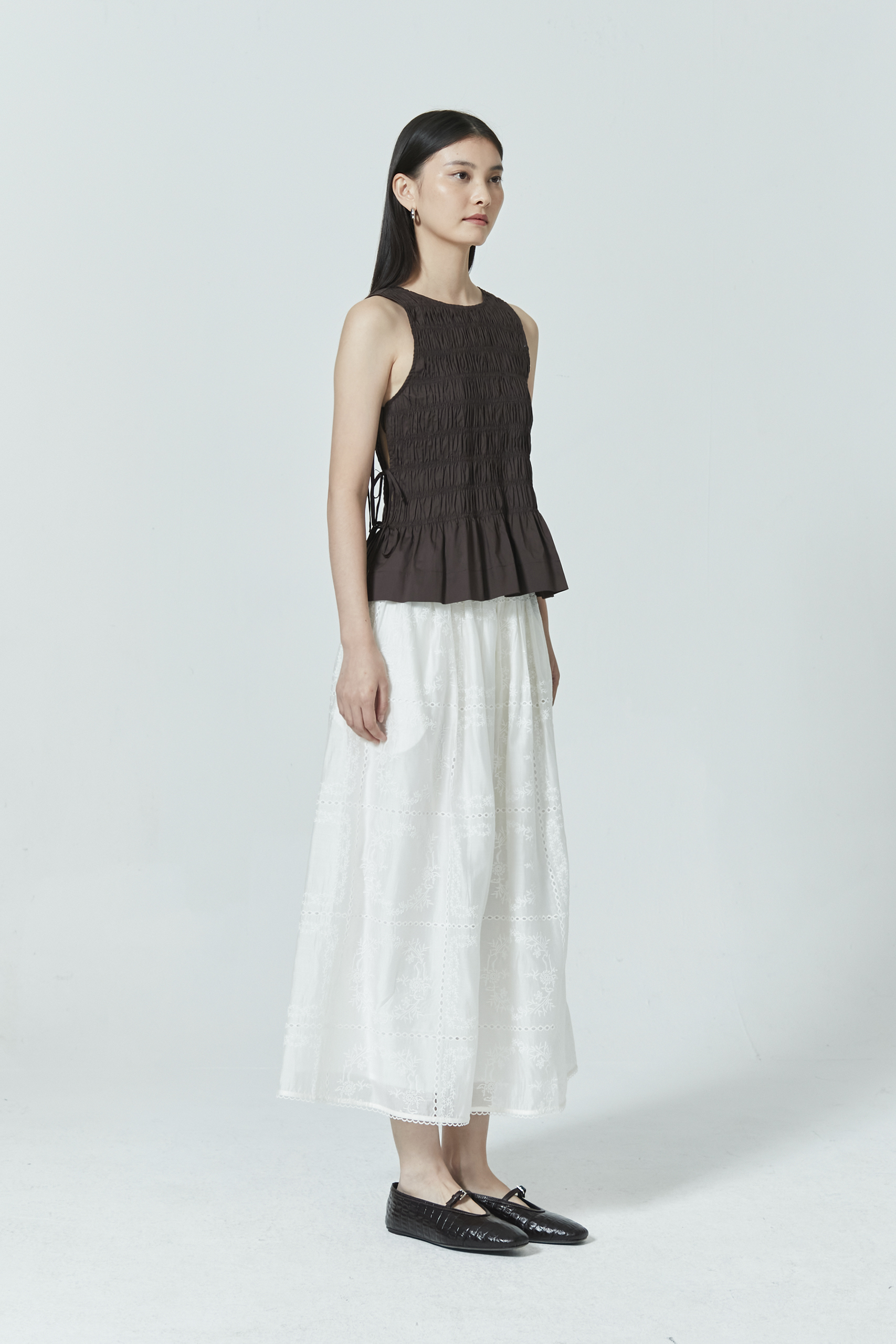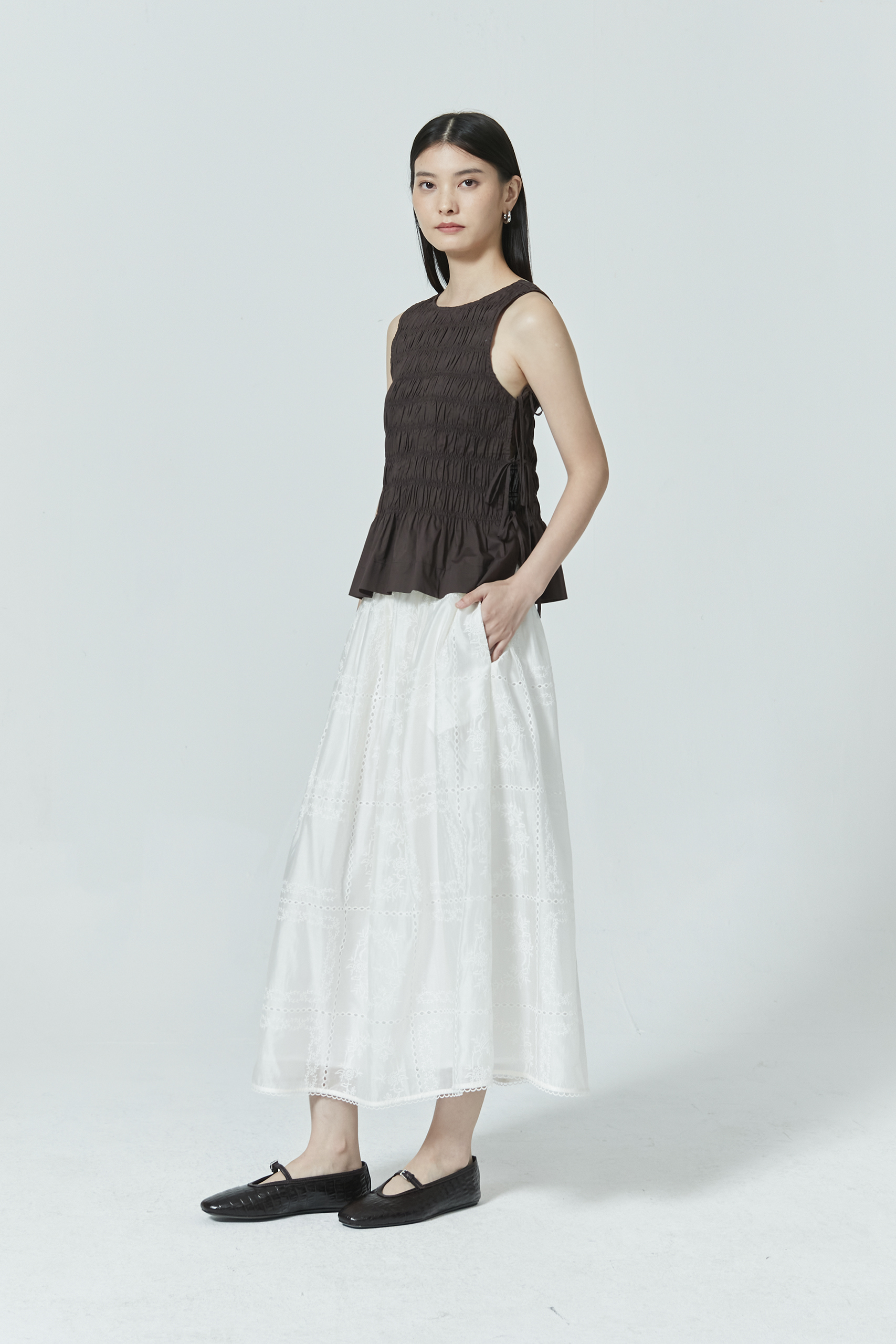 Fun, flattering, and flexible—the Shirred Tie Detail Top is a subtle showstopper. Crafted from a 100% cotton fabric, it stays breathable and comfortable throughout the day.