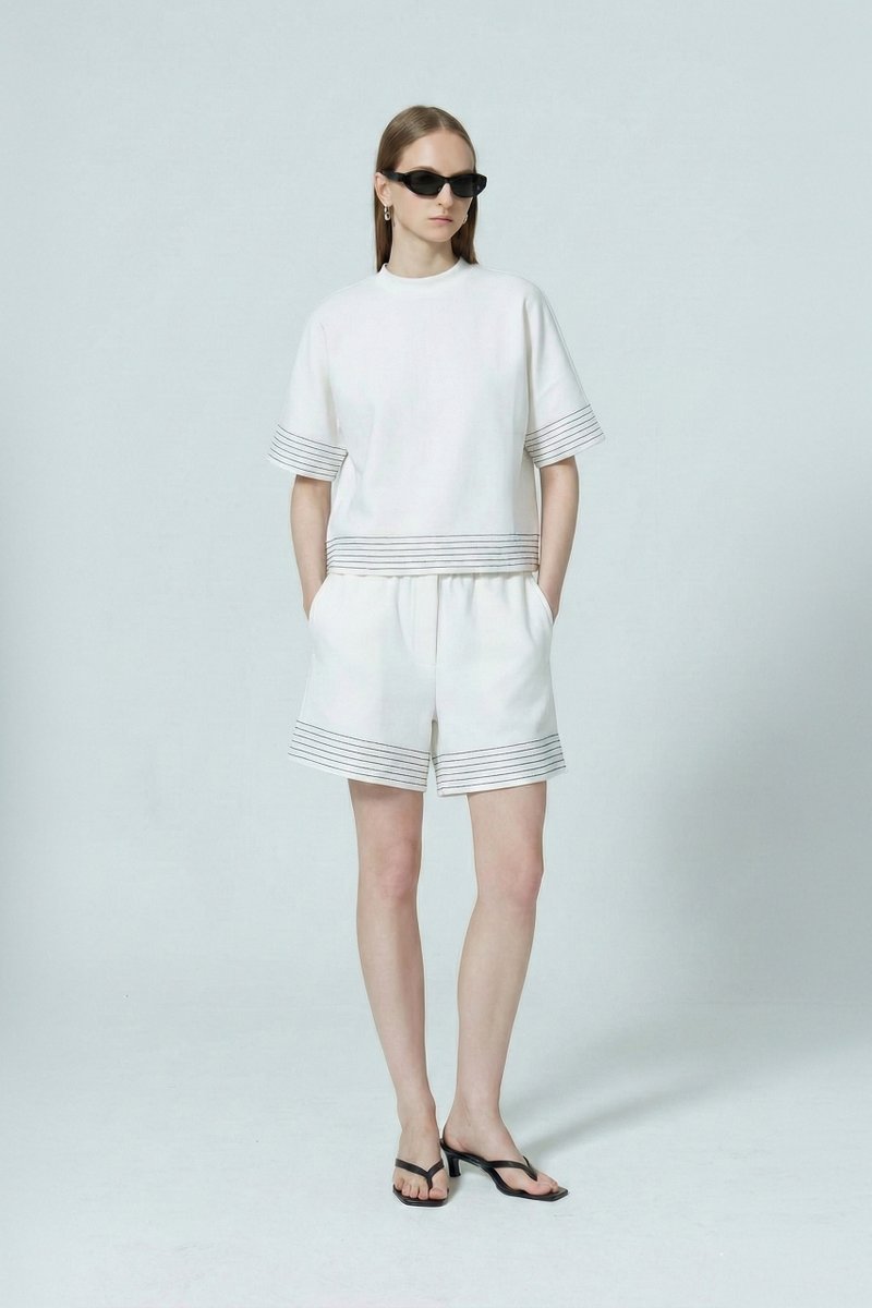 Crafted in our buttery soft jersey fabric, this tee is an elevated version of your everyday look. Stitching details run along the hem and sleeves, creating an accent for a distinctive finish. Pair with the matching shorts for an effortless look.