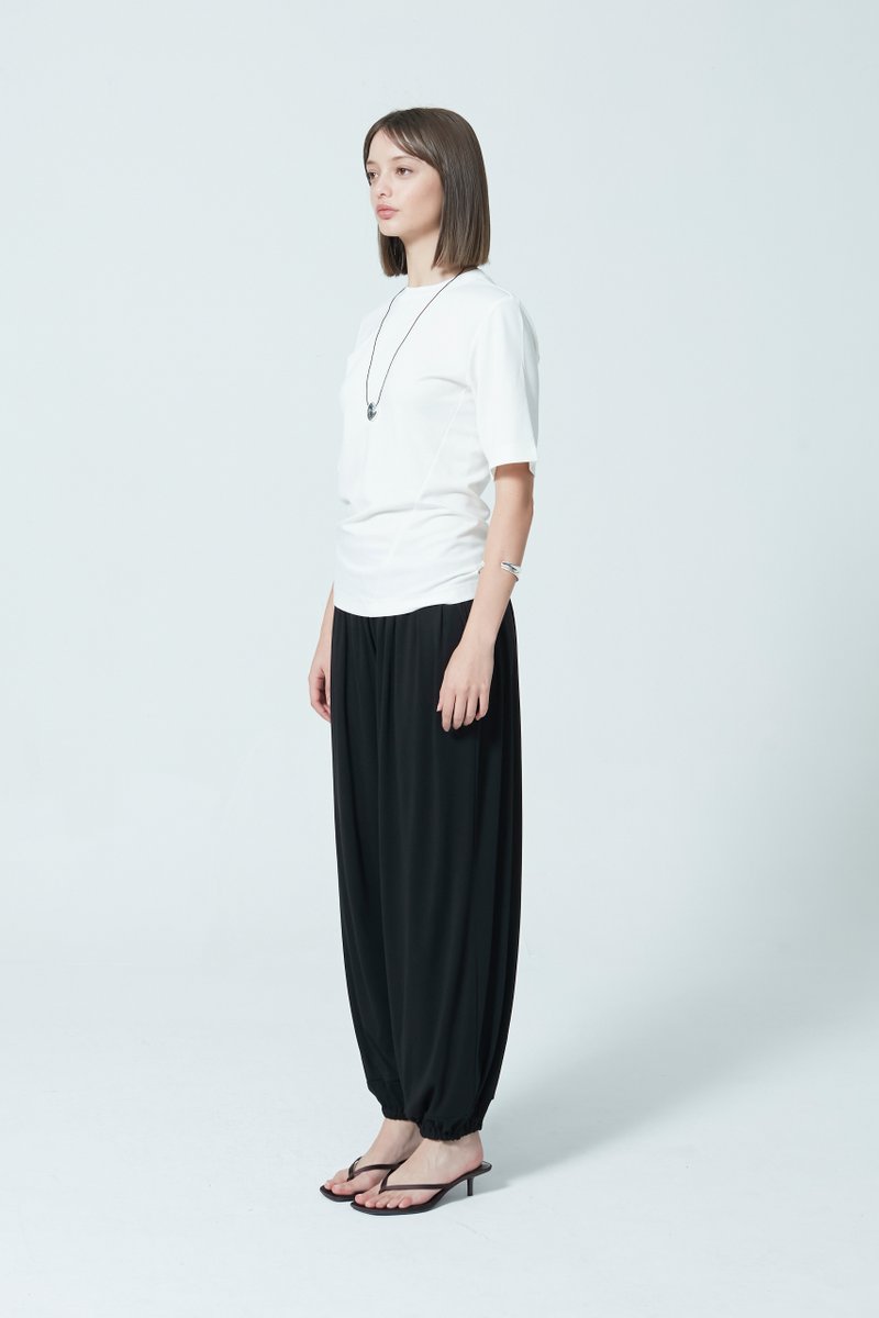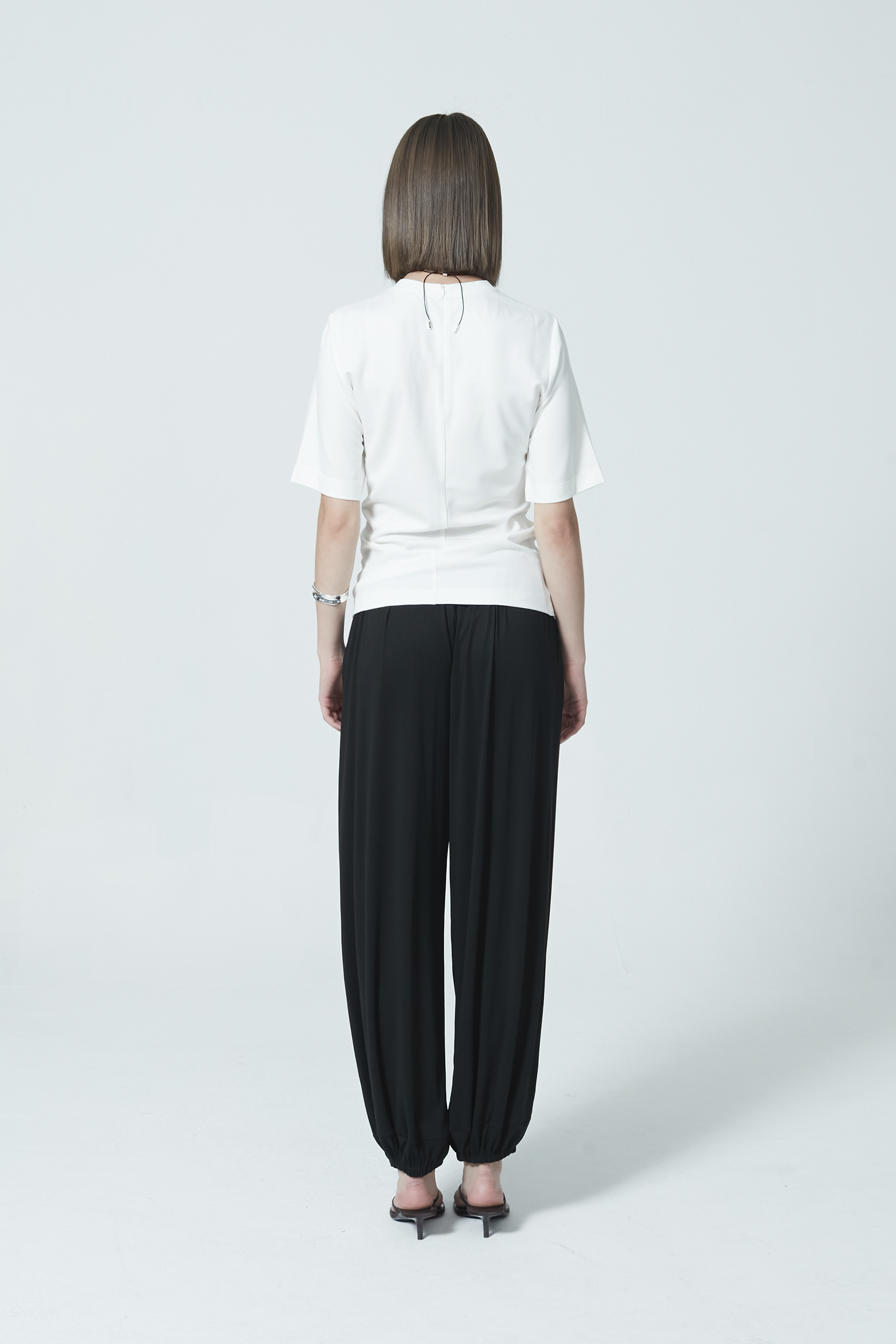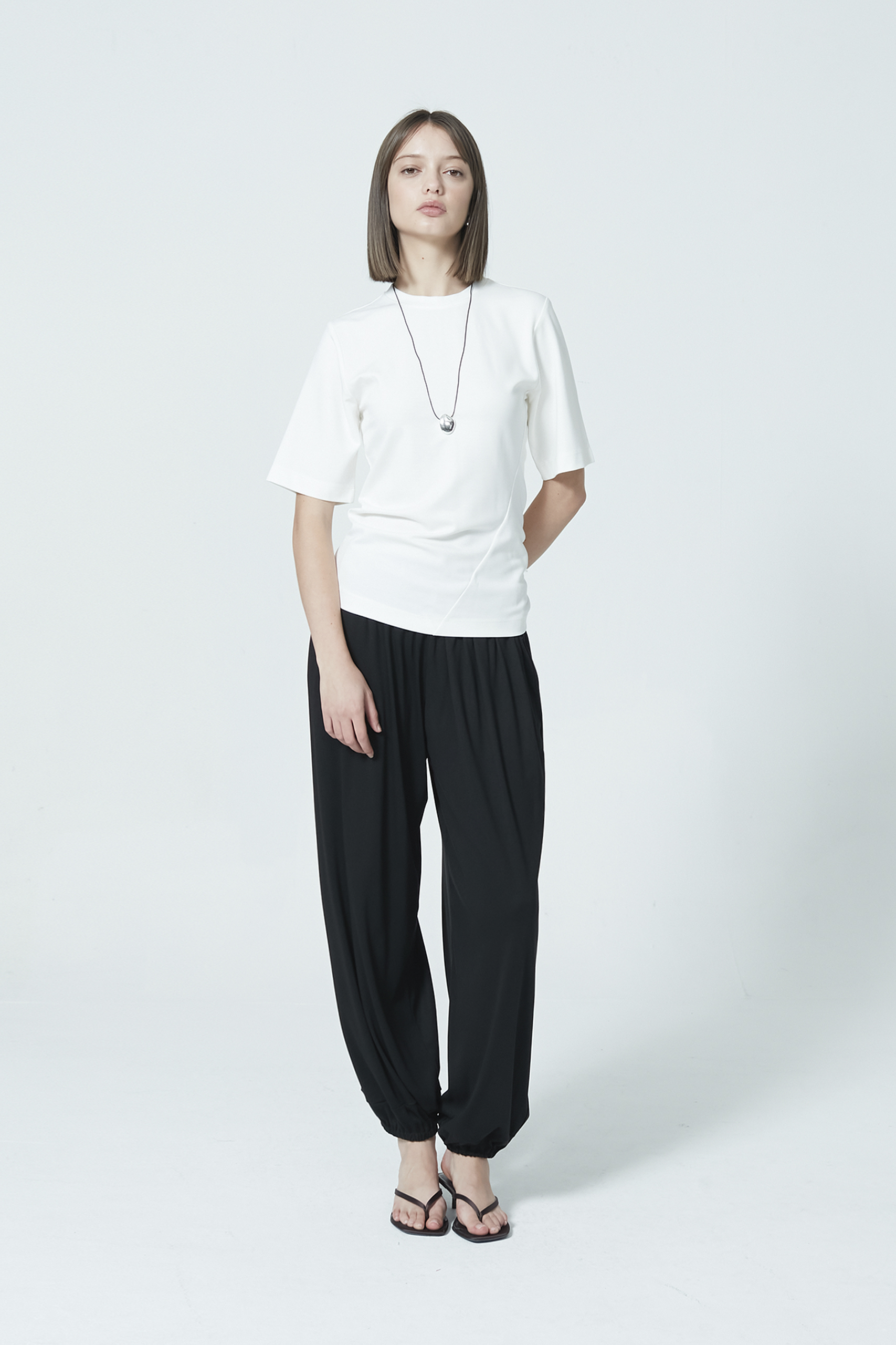 This T-shirt features unique cuts and seams, made to accentuate the figure and add visual interest. Pair with jeans for a dressed down look or with shorts for a leisurely day out.